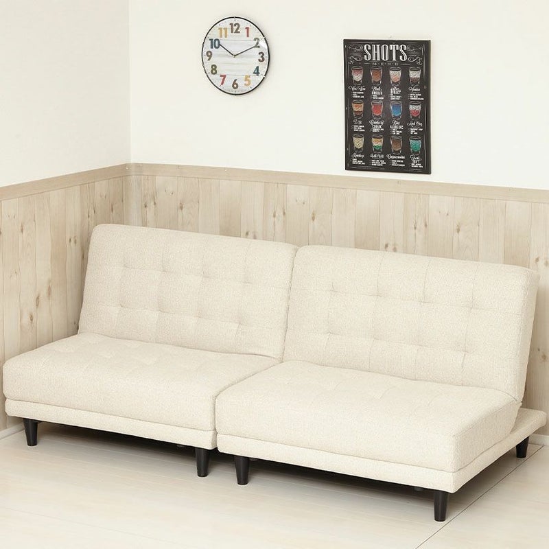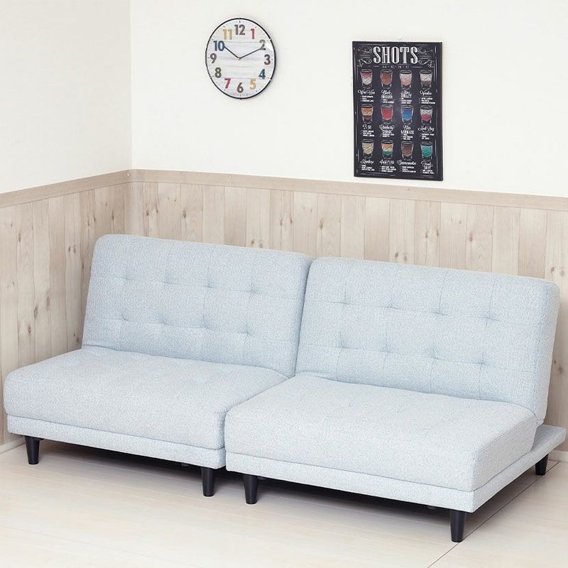 ●普段は横に並べて3~4人掛けのソファ、来客時は離してシングルソファ、リクライニングを倒して簡易ベッドとしても便利です。