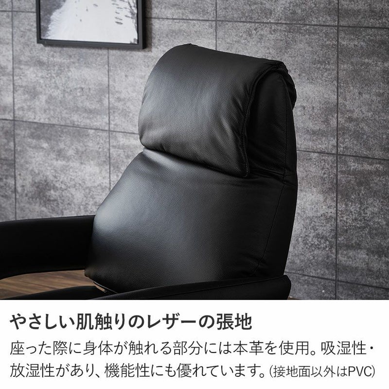座った際に身体が触れる部分には、やさしい肌触りの本革を使用しています。