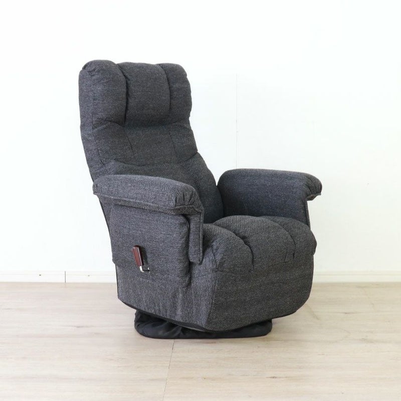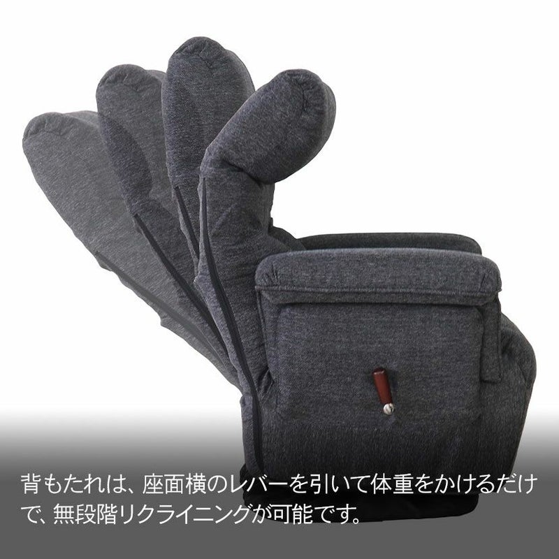 ●座面横のレバーを引いて背もたれに体重をかけるだけで、無段階リクライニングが可能です。