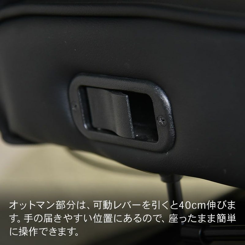 ●オットマン部分は、可動レバーを引くと40cm伸びます。手の届きやすい位置にあるので、座ったまま簡単に操作できます。