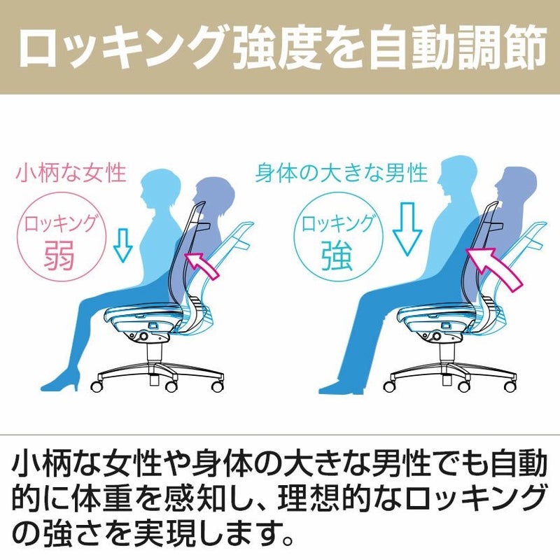 | 機能・特徴 | ロッキング強度を自動調節、ロッキング固定レバー、ガス上下調節 |