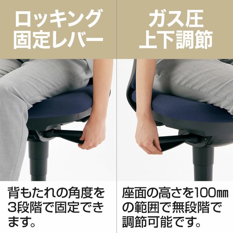 ・座面の高さを100mmの範囲で無段階で調節可能です。