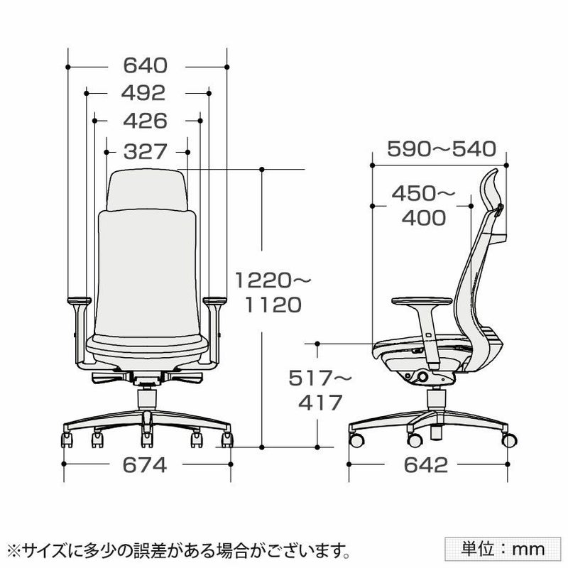 | サイズ(その他) | 座面高さ / 417~517mm 肘高さ(座面より) / 188~288mm |