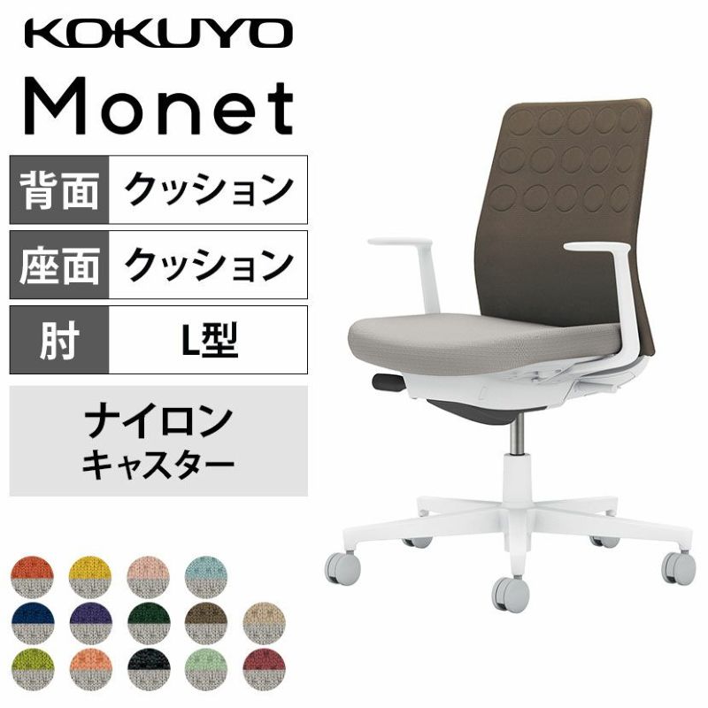 【設置無料】オフィスチェア モネット Monet 背クッションタイプ 背座別色 背色選択タイプ L型肘 ショルダーサポートなし ランバーサポートなし 脚ホワイトグレー 本体ホワイトグレー 座ライトグレー ナイロンキャスター C03-W210W | コクヨ オフィスチェア