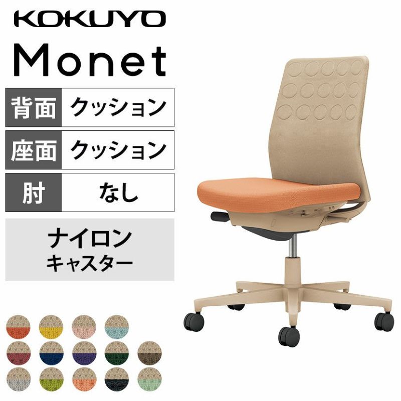 【設置無料】オフィスチェア モネット Monet 背クッションタイプ 背座別色 座色選択タイプ 肘なし ショルダーサポートなし ランバーサポートなし 脚ソフトベージュ 本体ソフトベージュ 背ソフトベージュ ナイロンキャスター C03-Z200W | コクヨ オフィスチェア