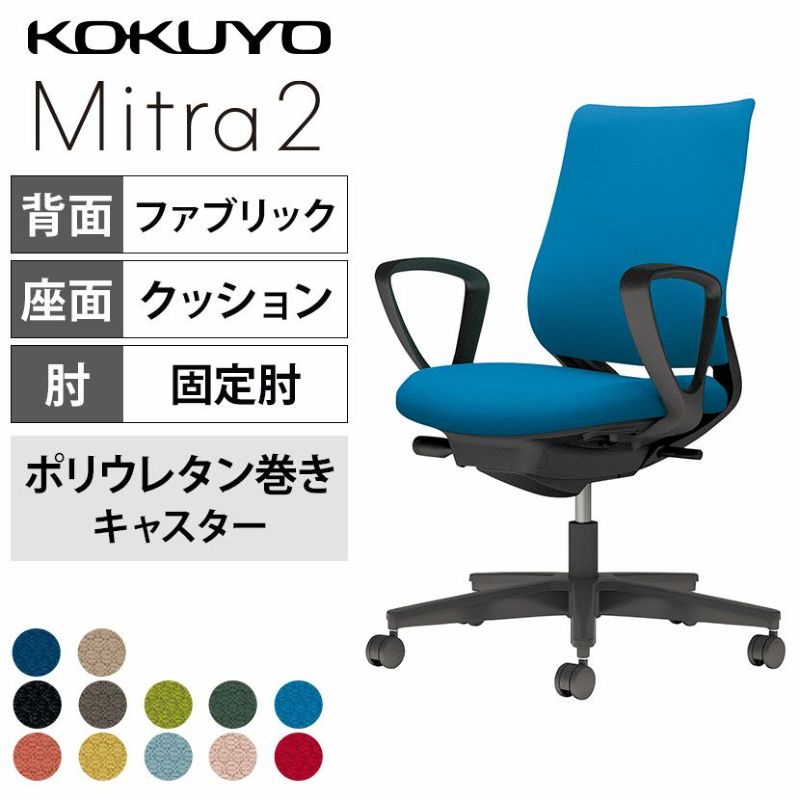 【設置無料】オフィスチェア ミトラ2 Mitra2 ブラック脚 スタンダードバック サークル肘 ランバーサポートなし 張地ファブリックタイプ 本体ブラック ポリウレタン巻きキャスター C04-B150CU | コクヨ オフィスチェア