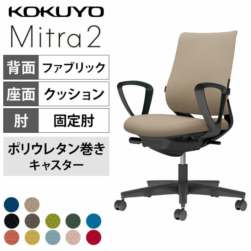 【設置無料】オフィスチェア ミトラ2 Mitra2 ブラック脚 スタンダードバック サークル肘 ランバーサポートあり 張地ファブリックタイプ 本体ブラック ポリウレタン巻きキャスター C04-B152CU | コクヨ オフィスチェア
