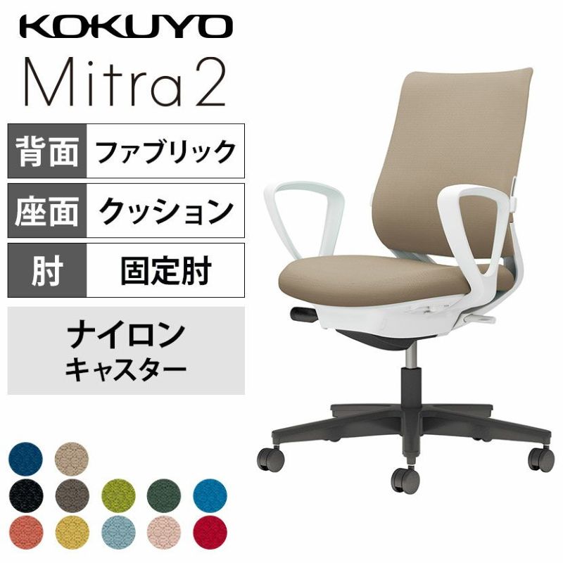 【設置無料】オフィスチェア ミトラ2 Mitra2 ブラック脚 スタンダードバック サークル肘 ランバーサポートあり 張地ファブリックタイプ 本体ホワイトグレー ナイロンキャスター C04-B152CW | コクヨ オフィスチェア