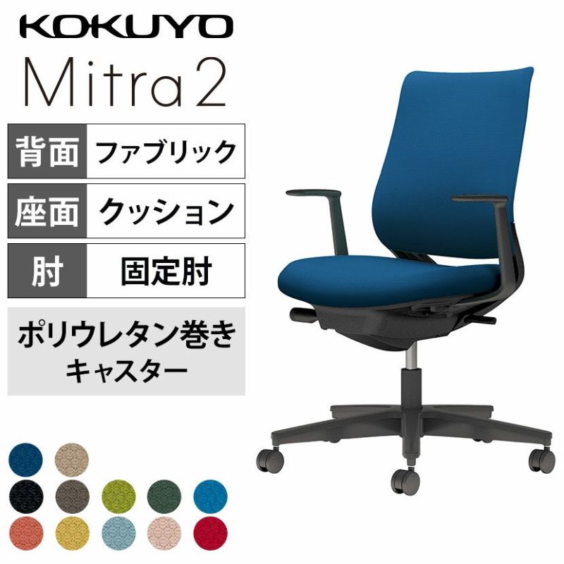 【設置無料】オフィスチェア ミトラ2 Mitra2 ブラック脚 スタンダードバック L字肘 ランバーサポートなし 張地ファブリックタイプ 本体ブラック ポリウレタン巻きキャスター C04-B190CU | コクヨ オフィスチェア