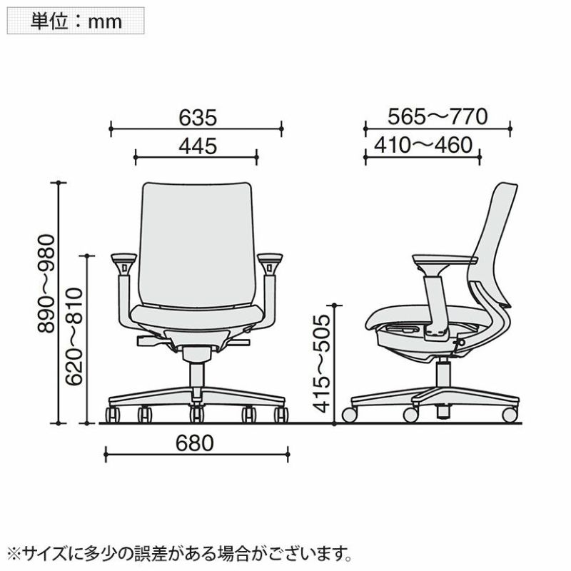 | サイズ | 外寸 / 幅680×奥行680×高さ890~980mm 座面 / 幅445×奥行410~460mm 座面高さ / 415~505mm 肘高さ / 620~810mm |