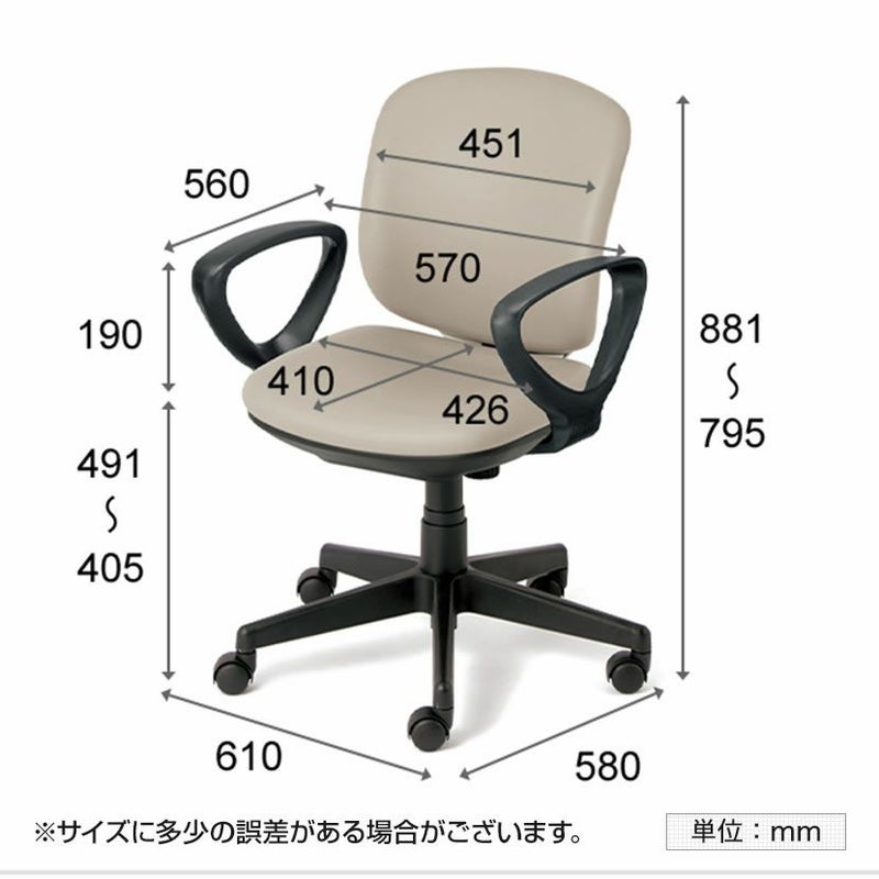 | サイズ | 幅610×奥行580×高さ795~881mm 座面高さ405~491mm |