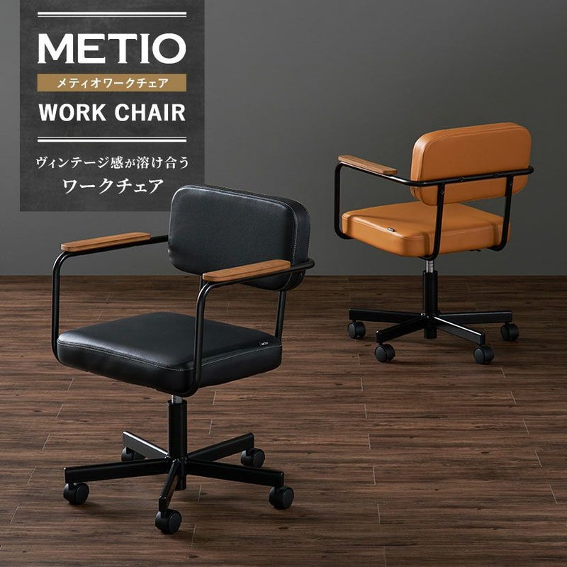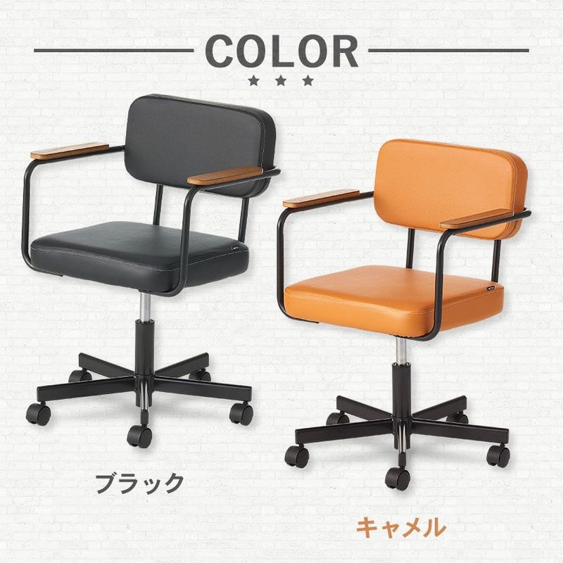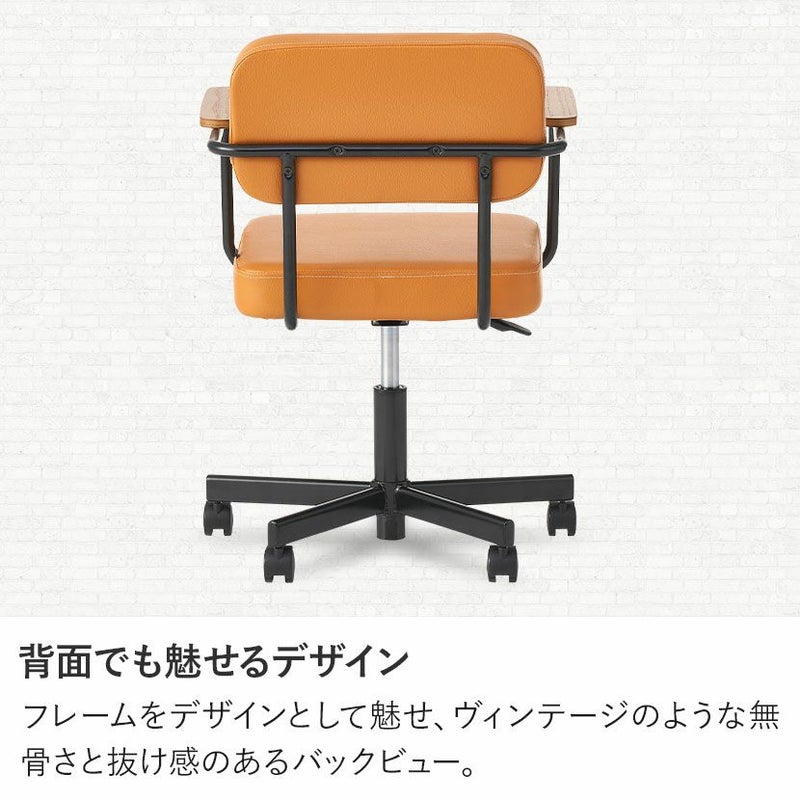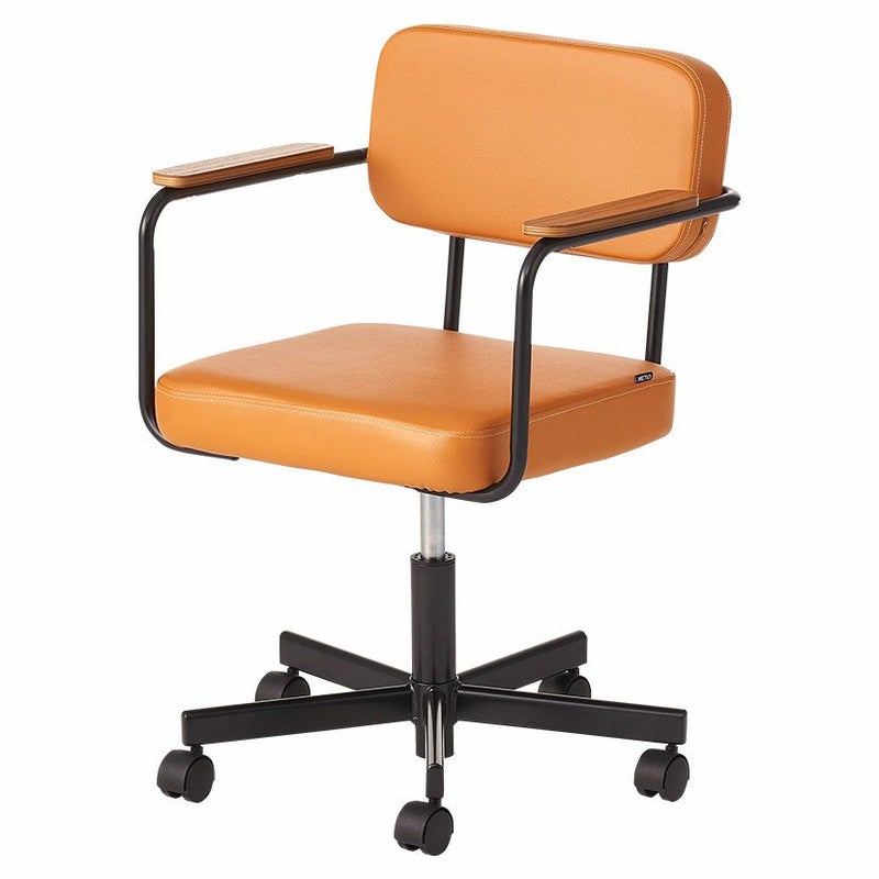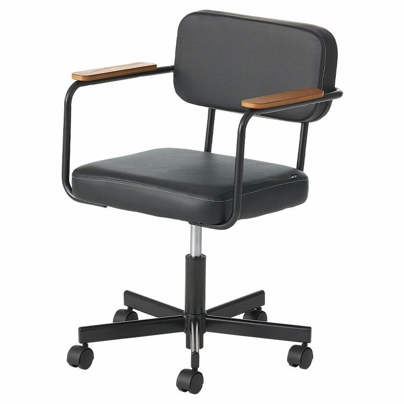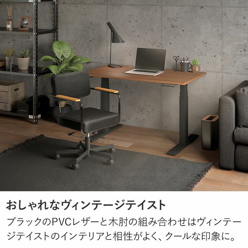 ブラックのPVCレザーと木肘の組み合わせはヴィンテージテイストのインテリアと相性がよく、クールな印象になります。