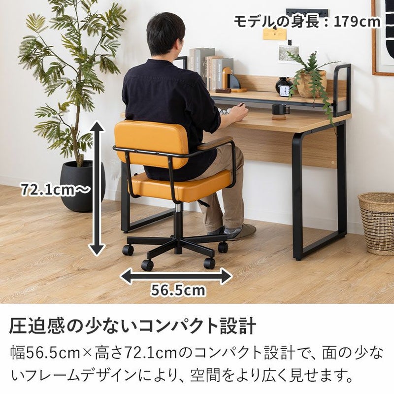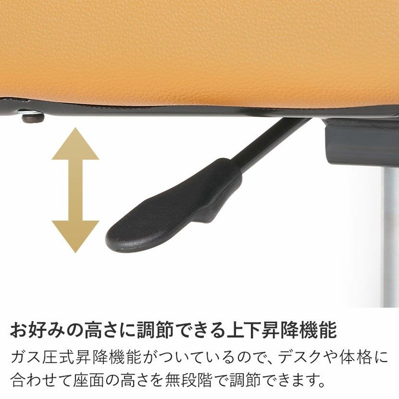 ガス圧式昇降機能がついているので、デスクや体格に合わせて座面の高さを無段階で調節できます。