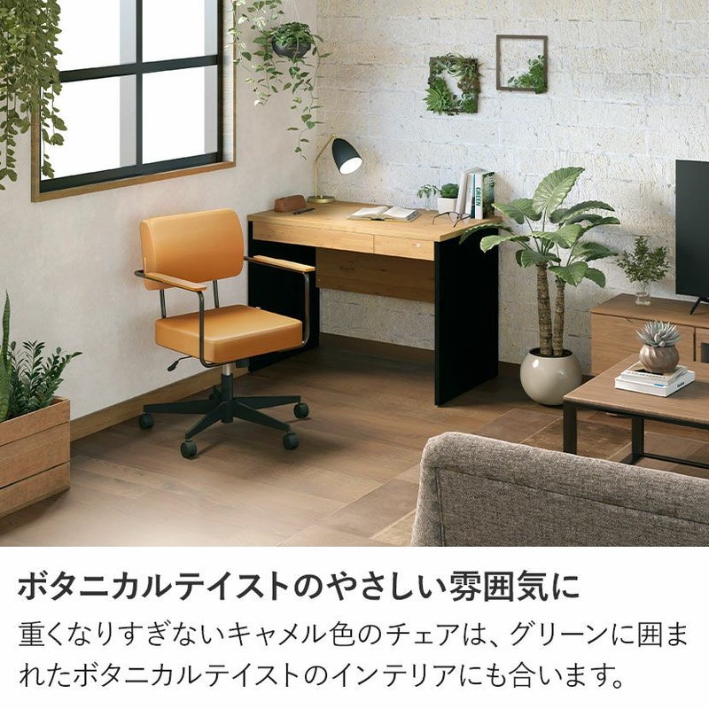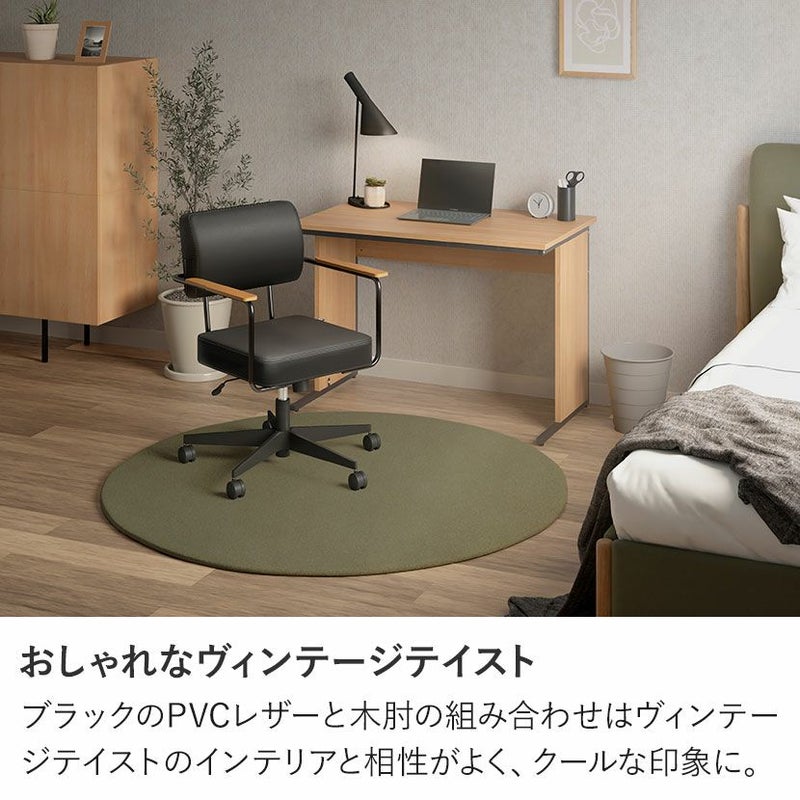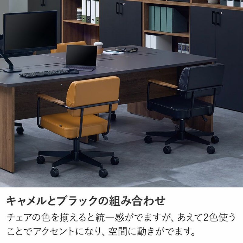 幅を広げた肘掛けは腕が置きやすく、大きめのキャスターで動作や移動もスムーズに。