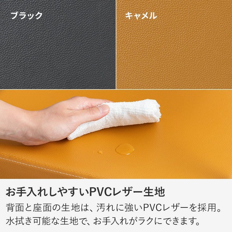背面と座面の生地は、汚れに強く、サッと拭き取れるPVCレザーを採用。