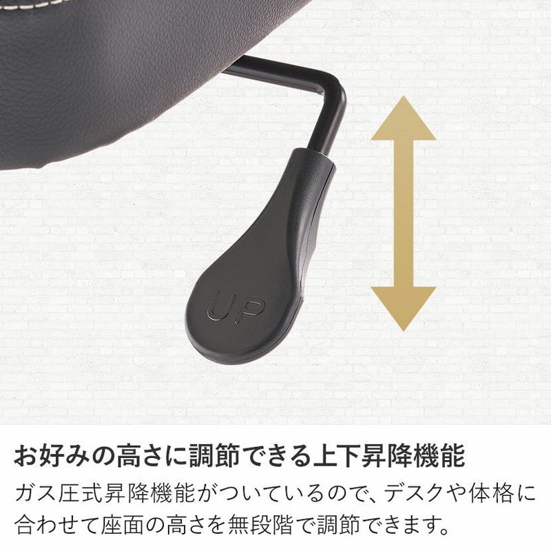 ロッキングと同じレバーを上下に操作し、無段階でラクラク昇降ができるガス圧式です。
