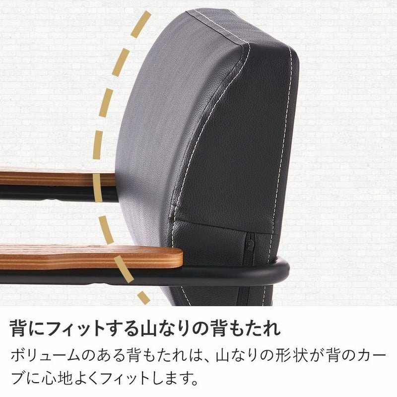 ボリュームのある背もたれは、山なりの形状が背のカーブに心地よくフィット。