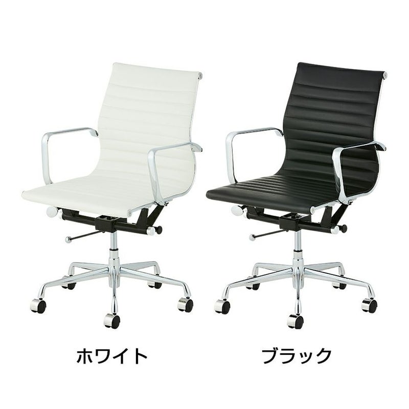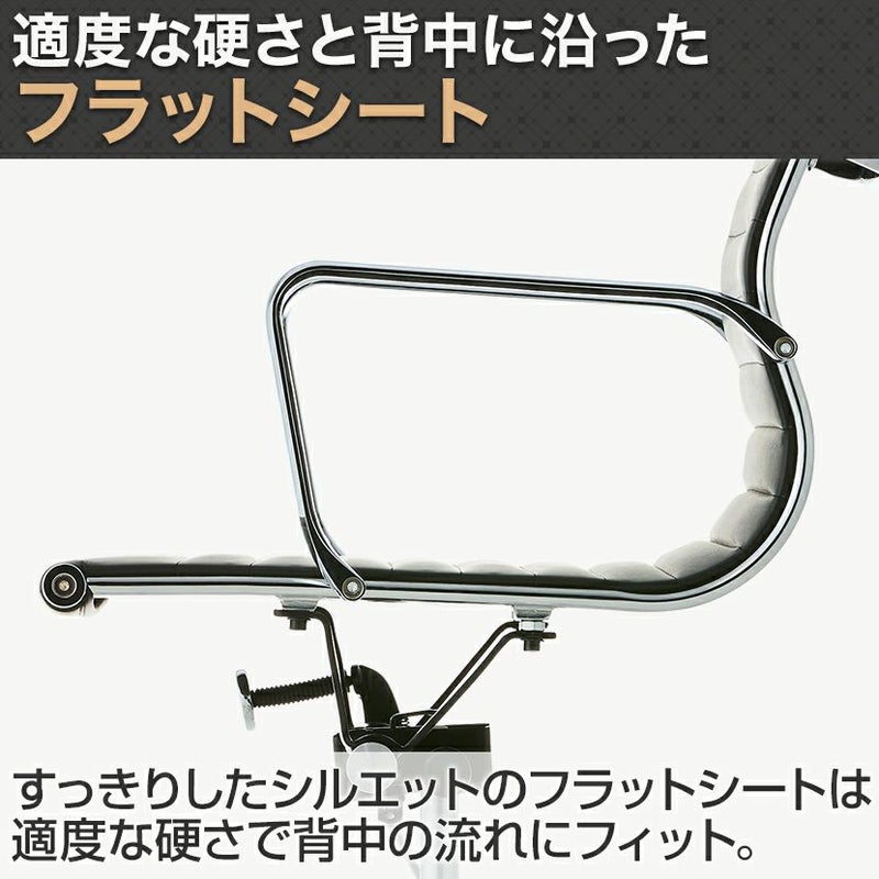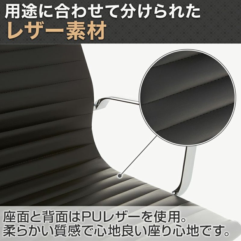 | 材質 | 背・座:PUレザー(表)・PVCレザー(裏)・ウレタンフォーム、本体フレーム:アルミニウム・スチール、脚部:アルミニウム、キャスター:ナイロン |