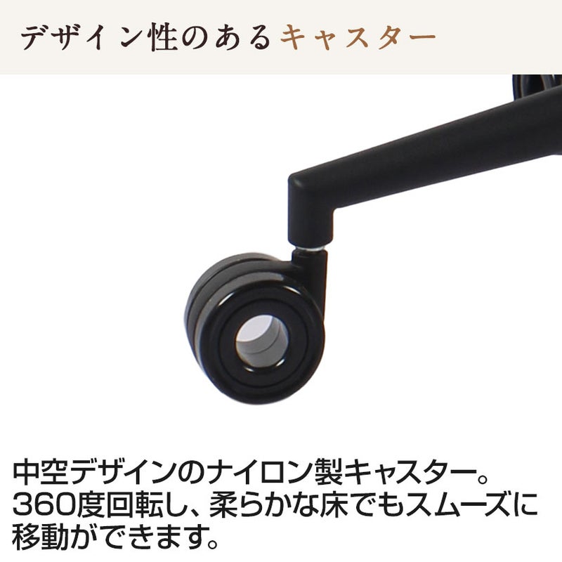 中空デザインのナイロン製キャスター。360度回転し、柔らかな床でもスムーズに移動ができます。
