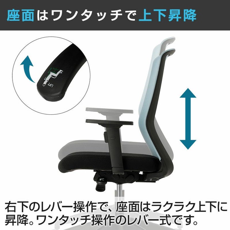 デスクの高さや体格に合わせて、座面の高さをお好みの位置に調節できます。