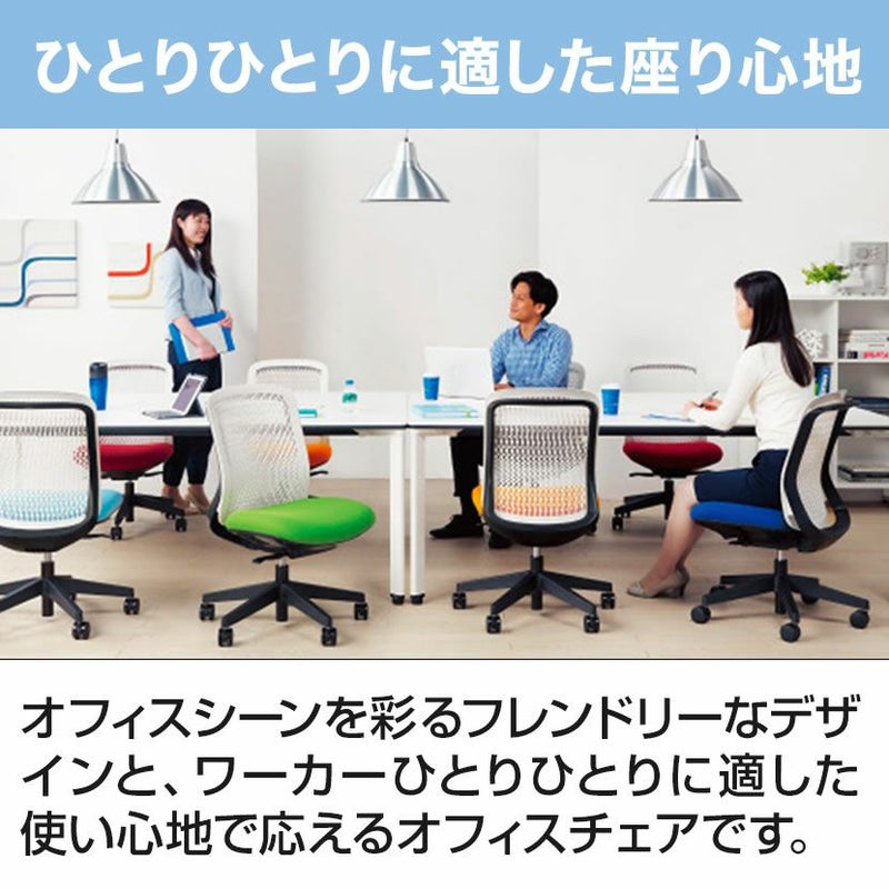 | 材質 | 背・座 / 樹脂成型品 クッション / モールドウレタン、ウレタンフォーム、布張り(PET再生クロス) 肘 / 樹脂成型品、軟質ウレタン樹脂パット付 脚 / 樹脂成型品、ナイロン双輪キャスター |