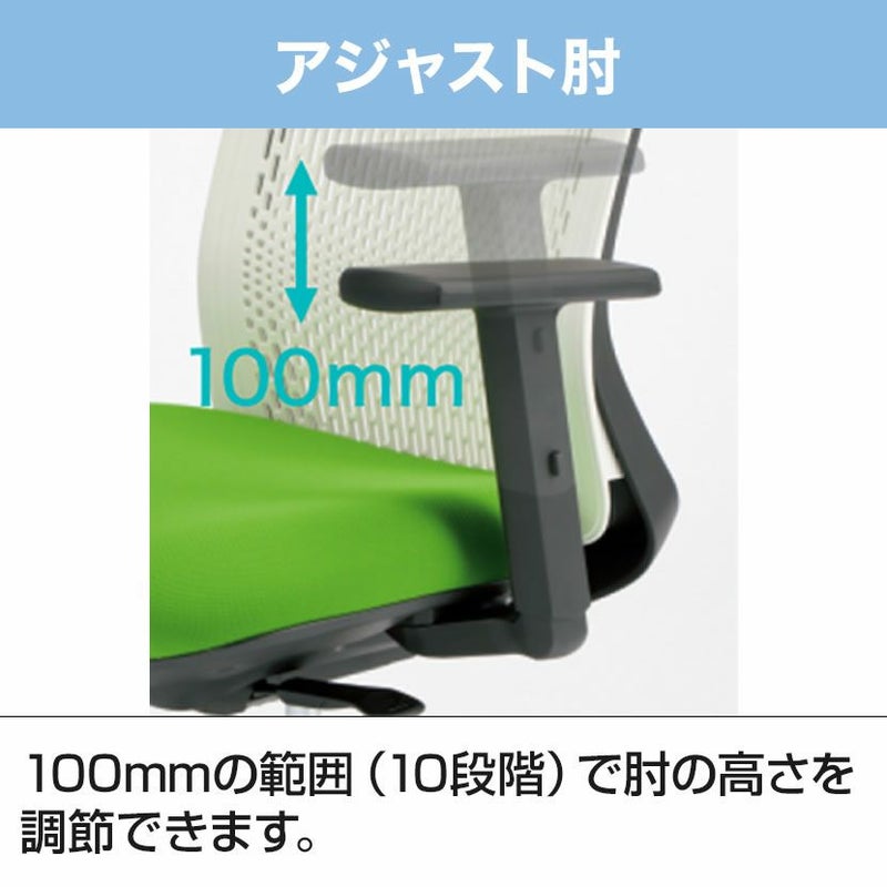 ・マウス操作など、PC作業をサポートします。100mmの範囲(10段階)で肘の高さを調節できます。