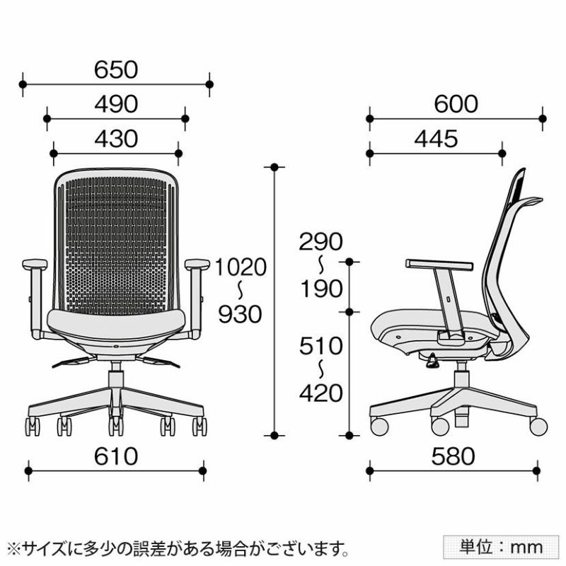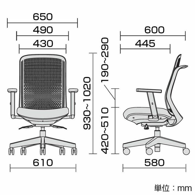 | サイズ | 幅650×奥行600×高さ930~1020mm 座面高さ420~510mm |