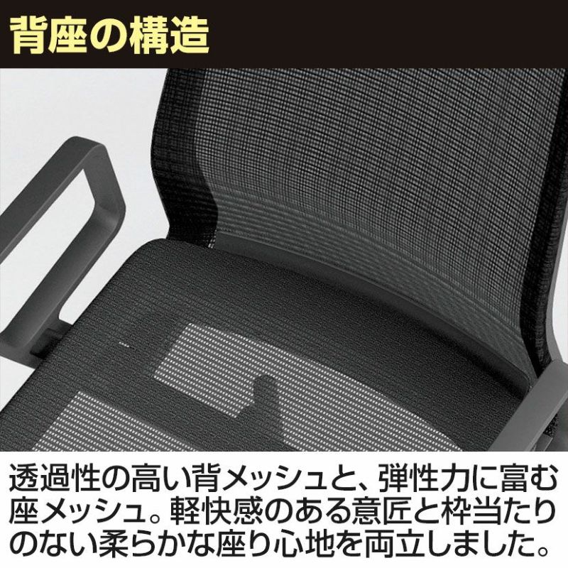 | 機能・特徴 | ・座面高さ調整 ・ロッキング調整 反力切り替えと角度固定が可能です。 ・オートアジャストロッキング 体重に合わせてロッキングの強さを自動的に調整します。 ・張地タイプ / メッシュ |