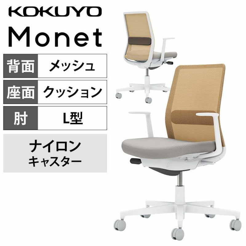 【設置無料】 ワークチェア モネット Monet オフィスチェア L字肘(固定肘) 樹脂脚 ナイロンキャスター ランバーサポート付き(ダークグレージュ) 背メッシュ 座面布張り 本体/脚ホワイトグレー 背ソフトベージュ 座ライトグレー C03-W112W-WE2YKM61 コクヨ 椅子