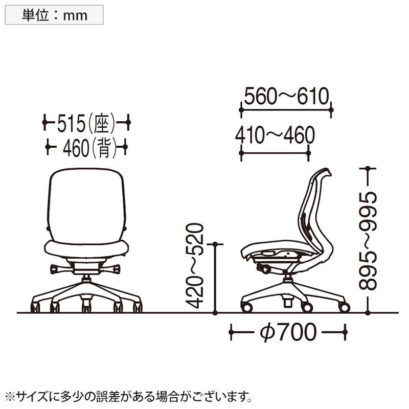 | サイズ(本体) | 外寸 / 幅515×奥行560~610×高さ885~995mm 座面高さ / 420~520mm 脚 / 直径700mm |