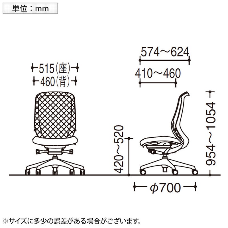 | サイズ(本体) | 外寸 / 幅515×奥行574~624×高さ954~1054mm 座面高さ / 420~520mm 脚 / 直径700mm |