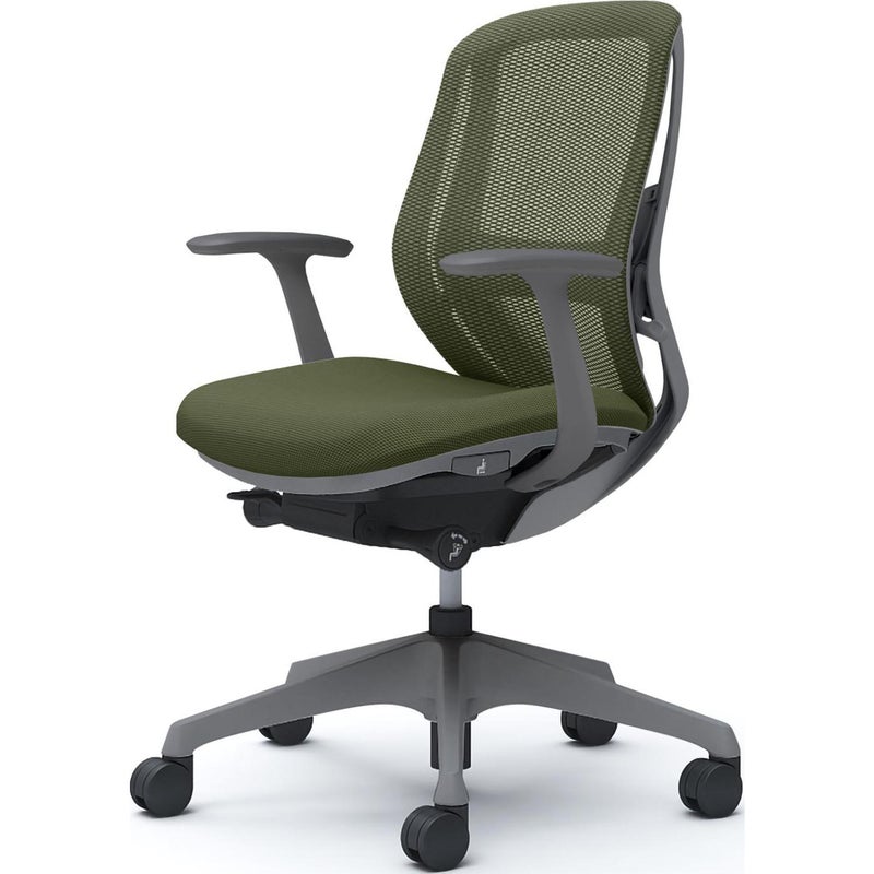 | 機能・特徴 | ・バックカーブアジャスト機構(背もたれのカーブを2段階で調節可能) ・ベンディング機能 カラダと背もたれのフィット感を向上させるため、背タイプに適した形状を採用。 ・前傾機能付き背座シンクロリクライニング リクライニング角度33度(前傾10度、後傾23度)、有段階ピッチ固定可能(4段階) リクライニング強弱調節・座面高さ調節(ストローク100mm) ・座面奥行き調節(ストローク50mm) |