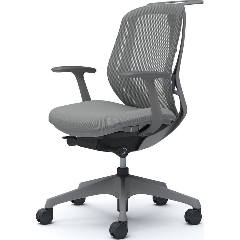 | 機能・特徴 | ・バックカーブアジャスト機構 背もたれのカーブを2段階で調節可能 ・前傾機能付き背座シンクロリクライニング 角度 / 33度(前傾10度、後傾23度) 4段階固定可能 強弱調節可能 ・座面高さ調節(ストローク100mm) ・座面奥行調節(ストローク50mm) ・ハンガー高さ調節(ストローク120mm) |