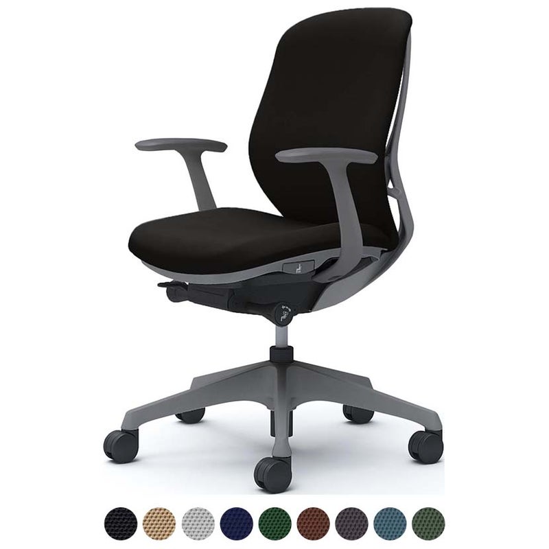| 機能・特徴 | ・バックカーブアジャスト機構(背もたれのカーブを2段階で調節可能) ・ベンディング機能 カラダと背もたれのフィット感を向上させるため、背タイプに適した形状を採用。 ・前傾機能付き背座シンクロリクライニング リクライニング角度33度(前傾10度、後傾23度)、有段階ピッチ固定可能(4段階) リクライニング強弱調節・座面高さ調節(ストローク100mm) ・座面奥行き調節(ストローク50mm) |