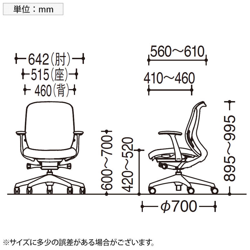 | サイズ(本体) | 外寸 / 幅642×奥行560~610×高さ885~995mm 座面高さ / 420~520mm 脚 / 直径700mm |