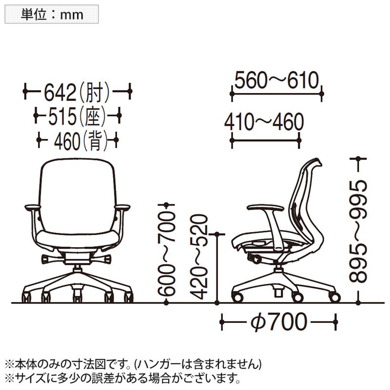 | 備考 | ・ハンガー付き(高さ調節可能) ・異硬度クッション 座面前方は太ももを圧迫しないように柔らかく、後方はお尻をしっかりサポートする硬めのクッションを採用。 ・3次元曲面 お尻を包み込むような局面が快適な座り心地をサポート ・グリーン購入法適合商品 |