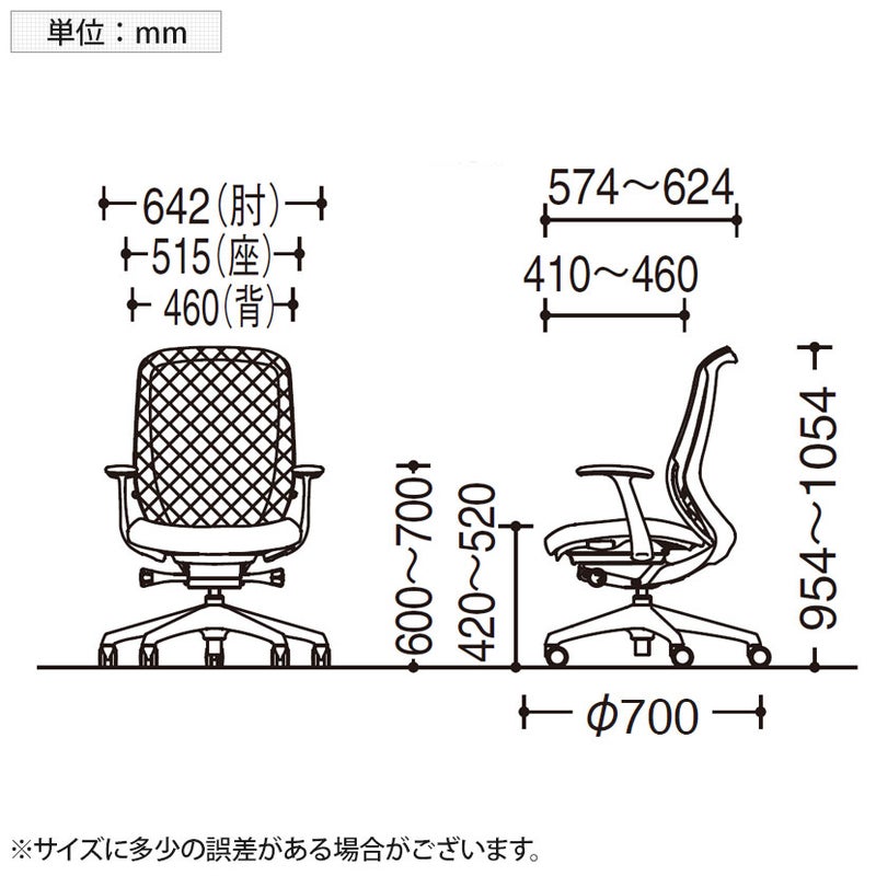 | サイズ(本体) | 外寸 / 幅642×奥行574~624×高さ954~1054mm 座面高さ / 420~520mm 脚 / 直径700mm |