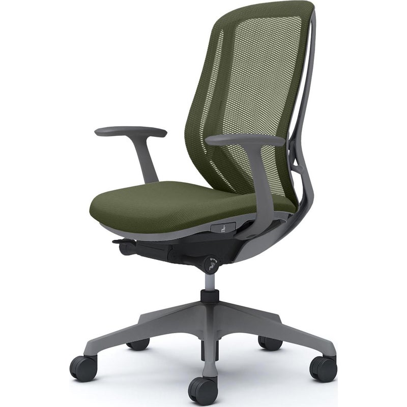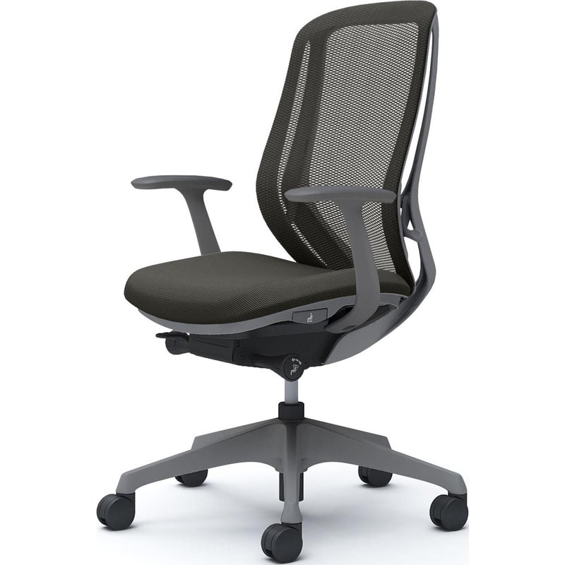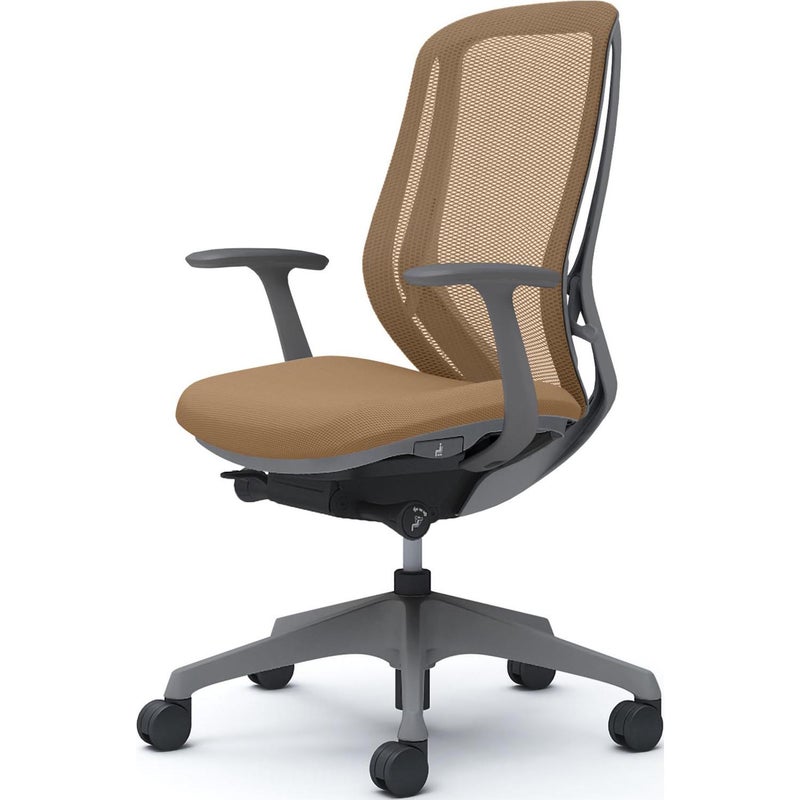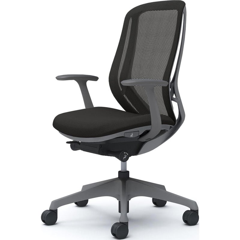 | 機能・特徴 | ・バックカーブアジャスト機構(背もたれのカーブを2段階で調節可能) ・ベンディング機能 カラダと背もたれのフィット感を向上させるため、背タイプに適した形状を採用。 ・前傾機能付き背座シンクロリクライニング リクライニング角度33度(前傾10度、後傾23度)、有段階ピッチ固定可能(4段階) リクライニング強弱調節・座面高さ調節(ストローク100mm) ・座面奥行き調節(ストローク50mm) |