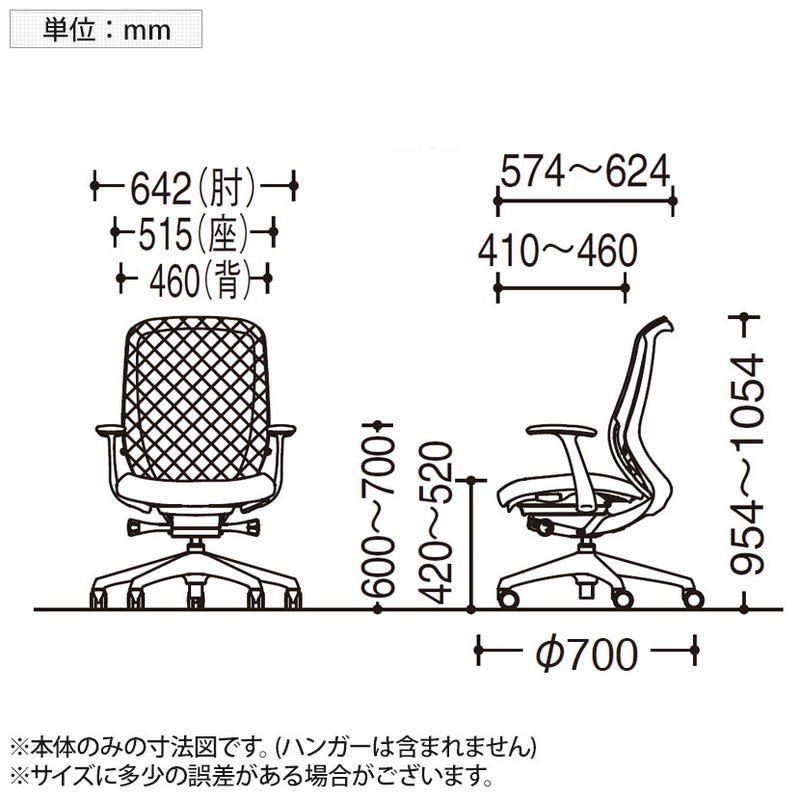 | 備考 | ・ハンガー付き(高さ調節可能) ・異硬度クッション 座面前方は太ももを圧迫しないように柔らかく、後方はお尻をしっかりサポートする硬めのクッションを採用。 ・3次元曲面 お尻を包み込むような局面が快適な座り心地をサポート ・グリーン購入法適合商品 |