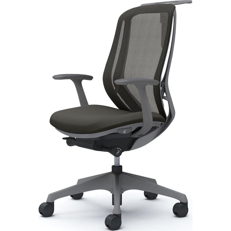 | 機能・特徴 | ・バックカーブアジャスト機構 背もたれのカーブを2段階で調節可能 ・前傾機能付き背座シンクロリクライニング 角度 / 33度(前傾10度、後傾23度) 4段階固定可能 強弱調節可能 ・座面高さ調節(ストローク100mm) ・座面奥行調節(ストローク50mm) ・ハンガー高さ調節(ストローク120mm) |