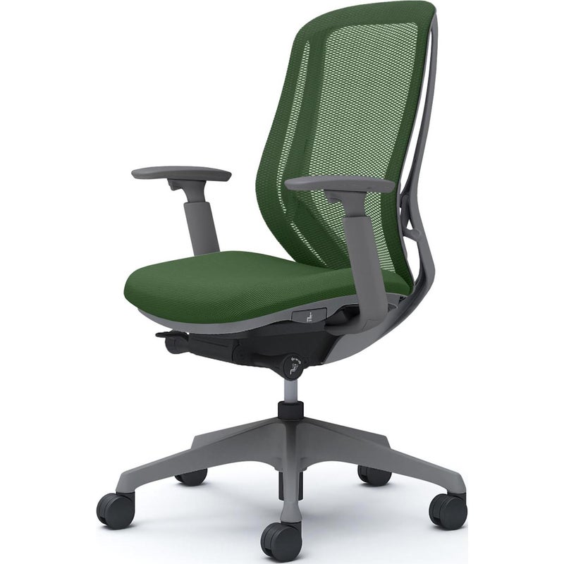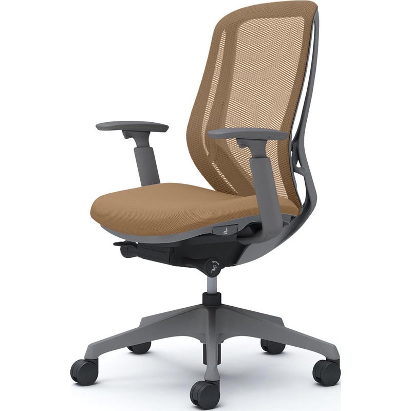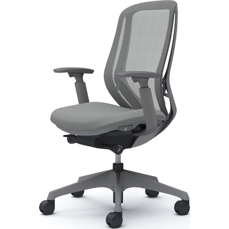 | 機能・特徴 | ・バックカーブアジャスト機構 背もたれのカーブを2段階で調節可能 ・前傾機能付き背座シンクロリクライニング 角度 / 33度(前傾10度、後傾23度) 4段階固定可能 強弱調節可能 ・アジャストアーム(上下100mm、前後50mm、内側20度、外側20度) ・座面高さ調節(ストローク100mm) ・座面奥行調節(ストローク50mm) |