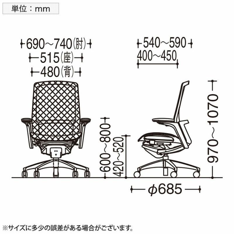 | サイズ(本体) | 外寸 / 幅690~740×奥行540~590×高さ970~1070mm 座面高さ / 420~520mm |