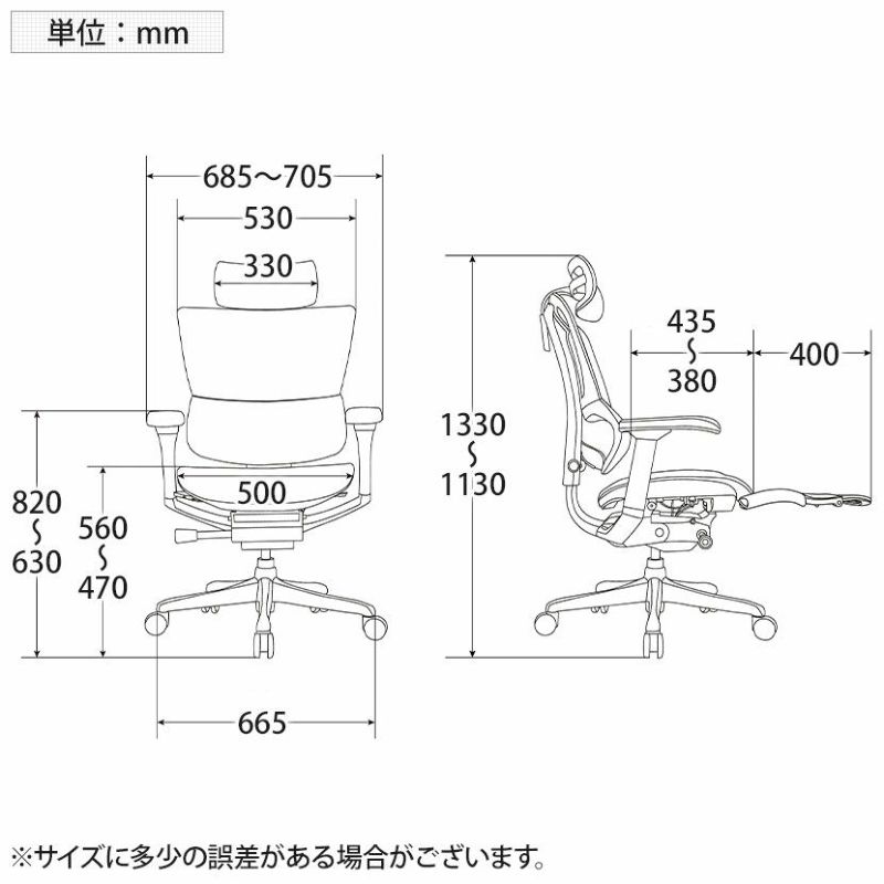 | サイズ(その他) | 肘高さ / 630~820mm 座面高さ / 470~560mm |