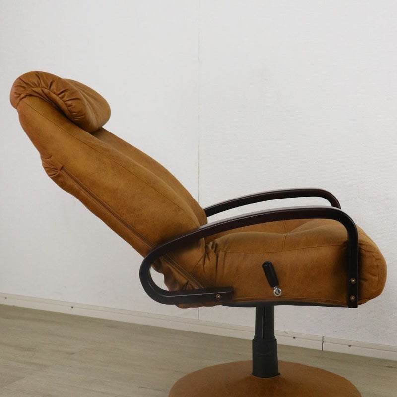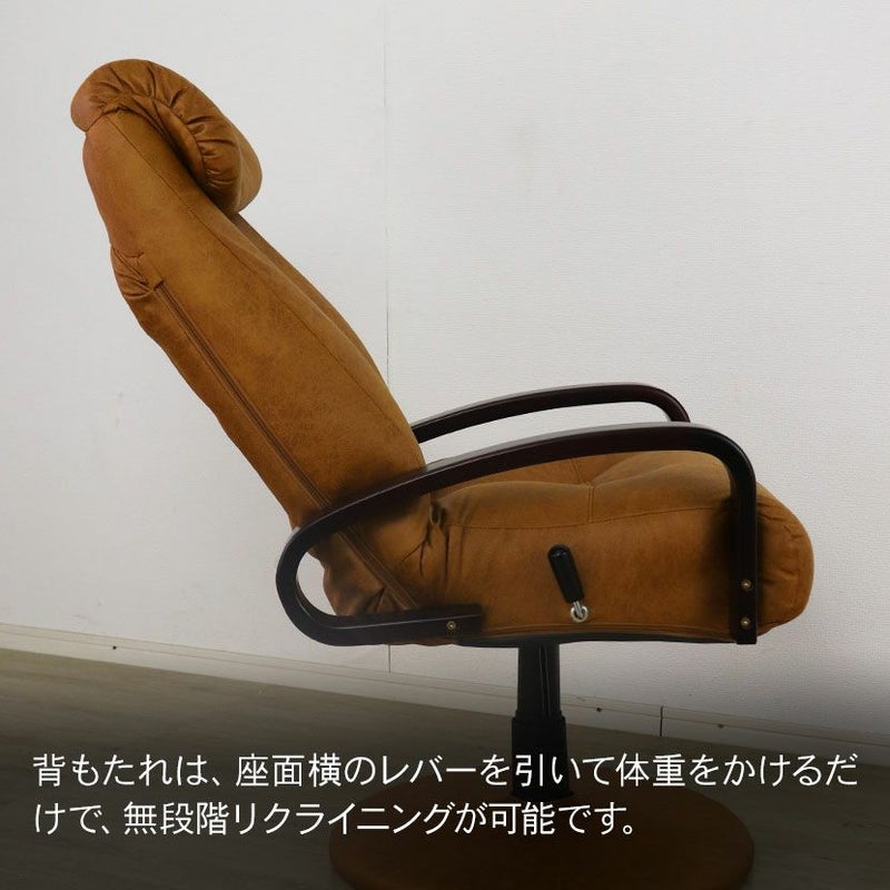 ●座面横のレバーを引いて背もたれに体重をかけるだけで、無段階リクライニングが可能です。