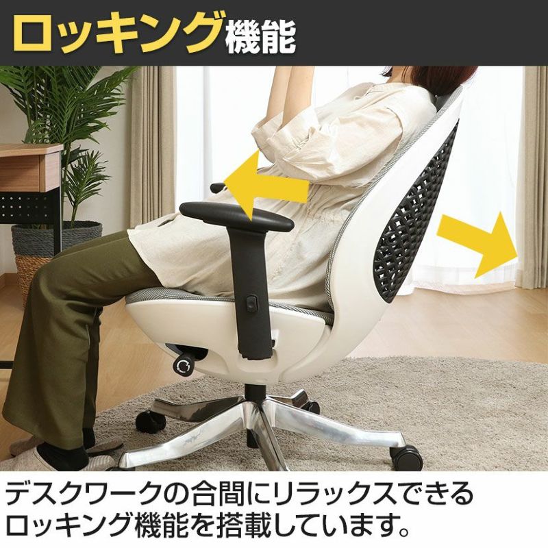 | 機能・特徴 | 座面高さ調節 ロッキング(硬さ調節・固定可能) 3Dアームレスト(上下・左右・前後) キャスター付き |