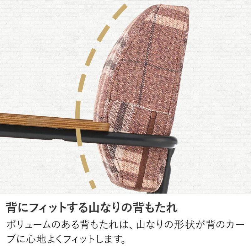 座面と背もたれの張地にタータンチェック柄のクロス素材を使用した親しみのあるデザイン。
