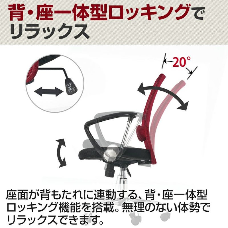 長時間座るデスクワーカーにうれしい、背・座一体型ロッキング機能を搭載。