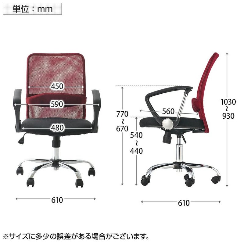 厚手でありながら通気性の高いメッシュ生地を、背・座面ともに使用。