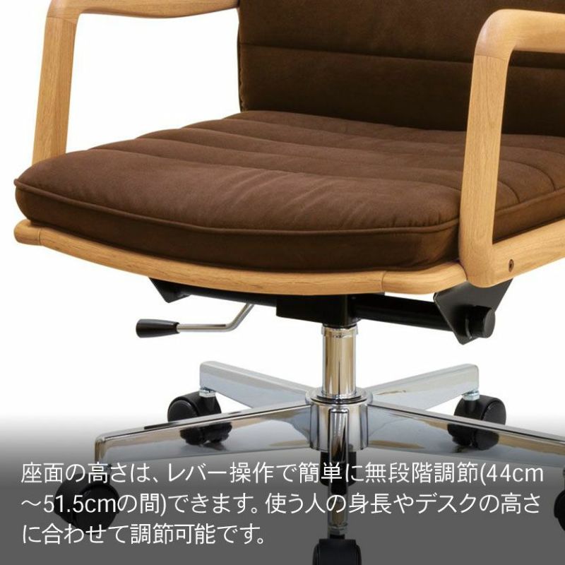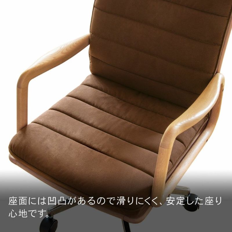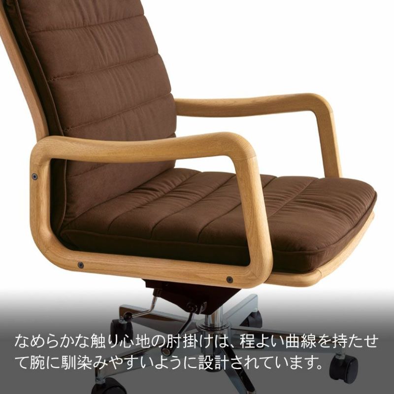 ●良質なオーク無垢材を採用した、なめらかな触り心地の肘掛けが付いています。