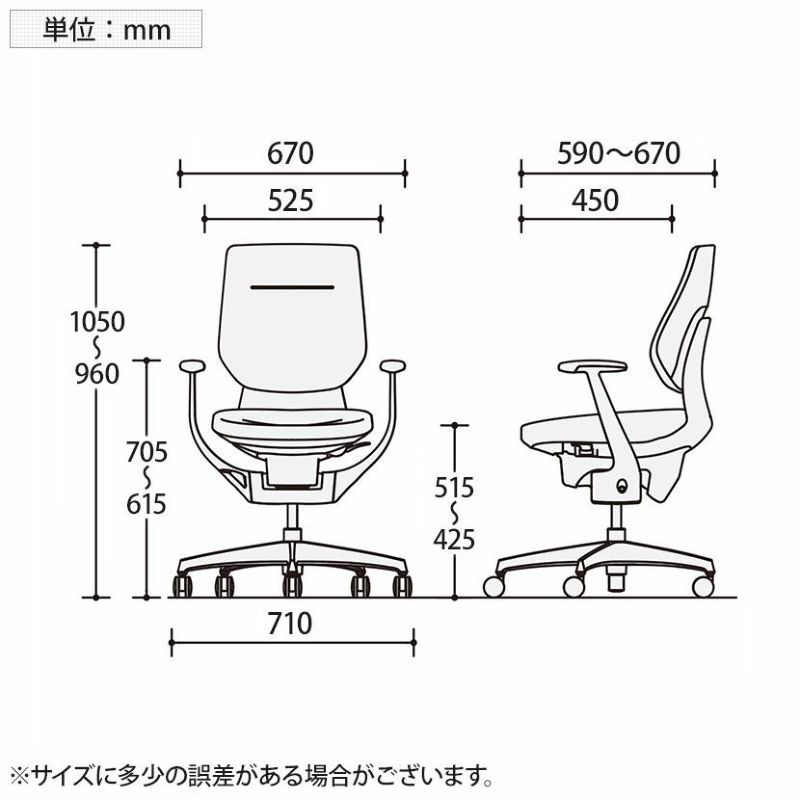 | サイズ(その他) | 座面 / 幅525×奥行450mm 肘高さ / 615~705mm 座面高さ / 425~515mm |